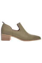 Featuring a natural leather stacked heel and pointed toe design. Jeannie combines soft Sage leather and a cut out slip on upper design. Bringing together soft leathers and a latex padded sock for comfort.
