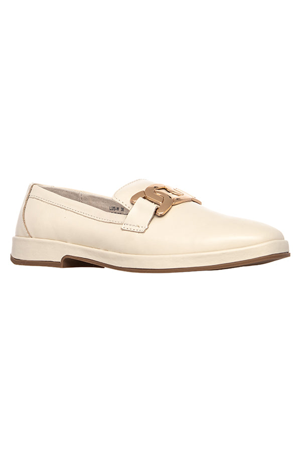 A flexible sneaker feel slip-on loafer. Featuring a memory foam padded stitched leather sock and a sleek apron front trimmed full loafer pattern. Combining seriously soft cream leather, a wrapped cream leather sole and a tan leather sock.