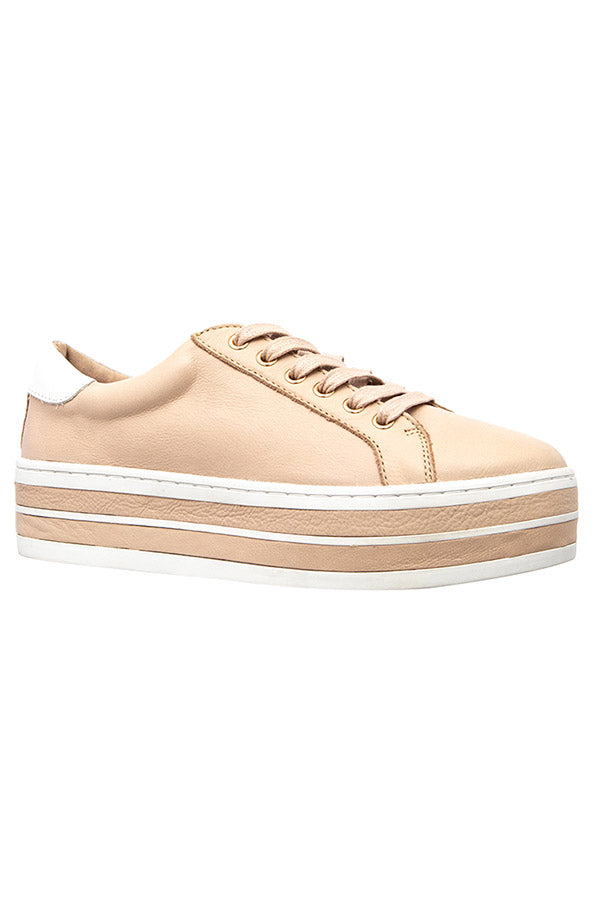 The double platform iconic rubber sneaker sole. Featuring a simplistic lace up sneaker upper in a our much loved neutral naked leather. Combining fresh sneaker silhouette and a removable memory foam arch support sock for all day comfort.