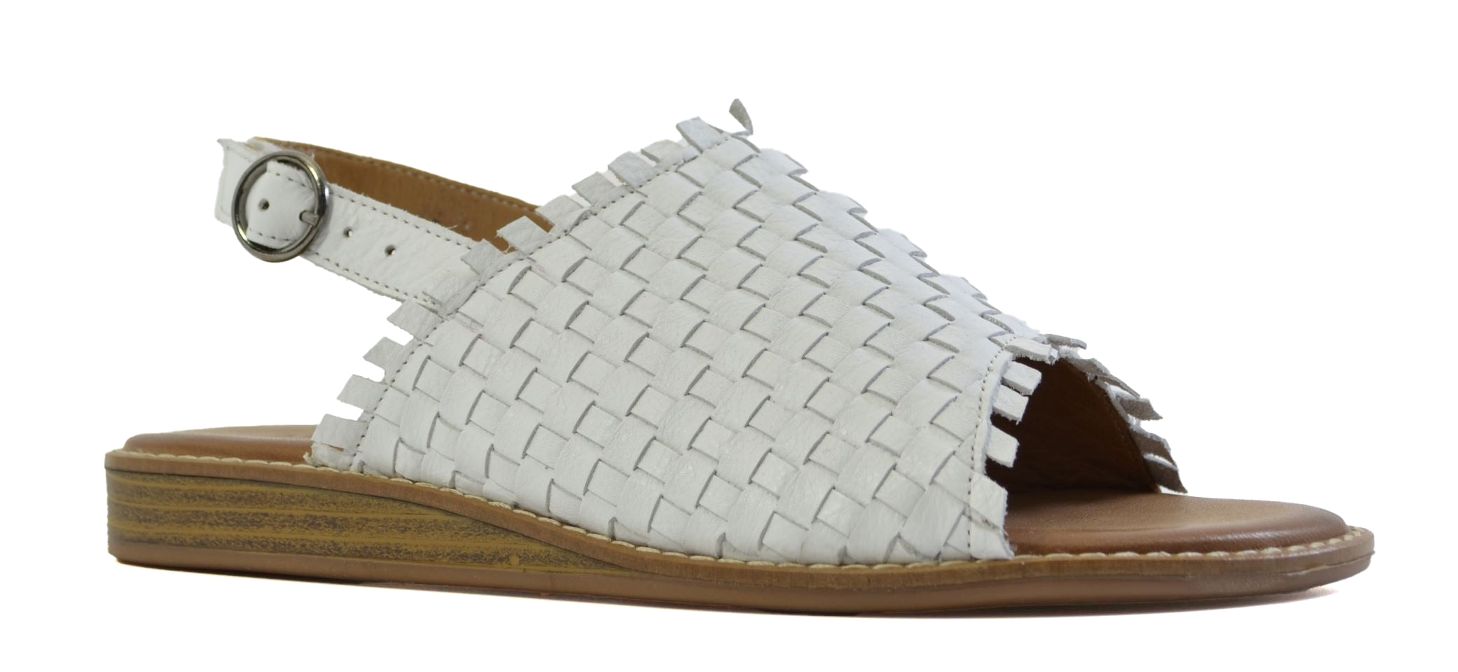 Combining a fully vamped slingback upper with intricate woven leather design. The Princess upper sits on a buttery leather sock and a demi wedge flexible outsole. Add the beautiful white leather to your summer wardrobe and achieve effortless style.