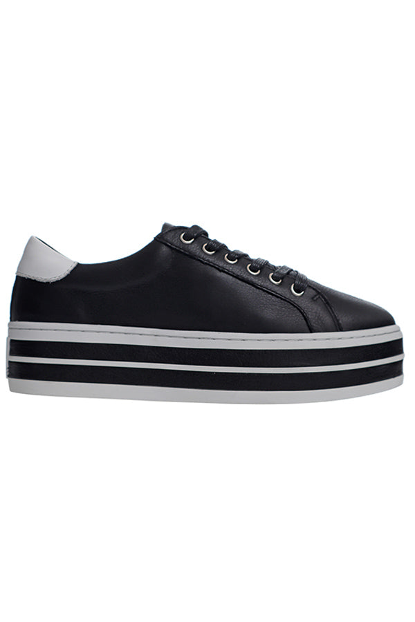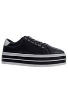 Welcome Oracle, an extension of the cult Alfie & Melbourne sneaker collection. Featuring a trendy double platform and shock absorbing outsole, this is our new favourite black sneaker with white trim to wear with everything. Fitted with our iconic removable memory foam/arch support leather innersole, these are friendly for most orthotics. Comfortable shoes can be cool! For those who have purchased Paradise or Pixie, these are the same weight despite the extra platform layer on the sole.
