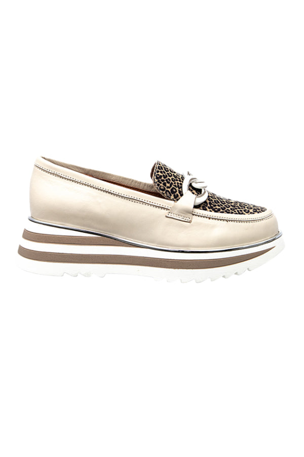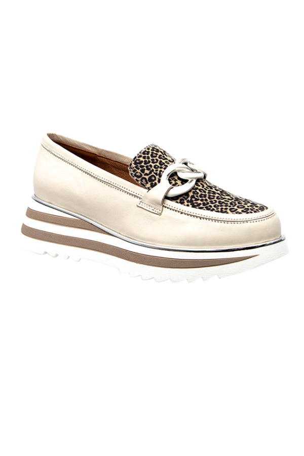 Crafted with a non-slip, light-weight flexible sole. Featuring a slip-on style loafer with latex stitched innersole. Combined with a classic cream leathered upper, complimentary striped sole. The perfect casual/dress hybrid.